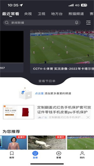 2、在直播可以看到有非常多的电视台资源,大家可以选择央视。
