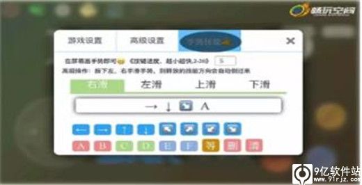 确认好技能释放按钮后,在手势技能设置框内输入不同按键,例如:→↓↘A