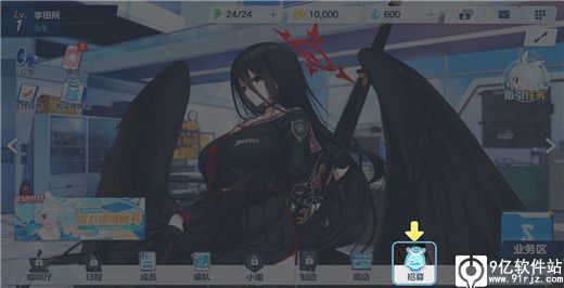 4、进入游戏的招募玩法,在其中可以招募到拥有各色技能的学生,而国服的账号第一次招募是必出紫色三星角色的,我们跟随点击即可