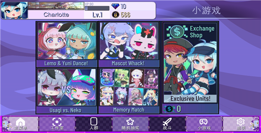 玩有趣的迷你游戏,例如 Usagi vs Neko 或 Mascot Whack!