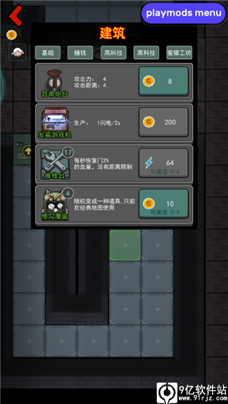 2、在游戏中你需要躲进房间里升级和建设炮台等建筑抵御猎梦者入侵