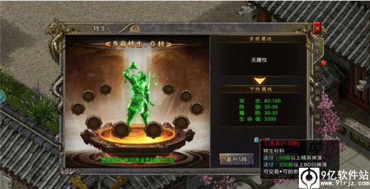 转生需要的的转生材料需要90级以上才会掉落,转生后可以提升攻击、防御、魔防以及生命值