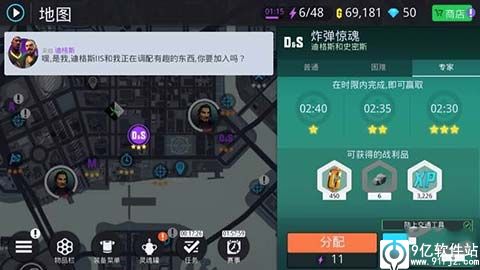 S级任务 又是一个送钻石的任务来拉 图2是出生点,你的座驾在左手边,前往把花车拦截下来(图4)一路横冲直撞到达黄圈处,然后跟着指引到达目的地,很简单的任务,但是注意千万别撞车,不然炸弹会被引爆的,开慢一点都行,时间是充足的,我比较喜欢走路中间(图5)。