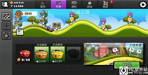冒险模式延续了老版本登山赛车一贯的经典无尽模式,游戏总共有4张冒险地图。当玩家在冒险地图里达到指定的距离数,便可解锁“杯赛”模式中的对应地图,可以和其他玩家一起进行比拼。