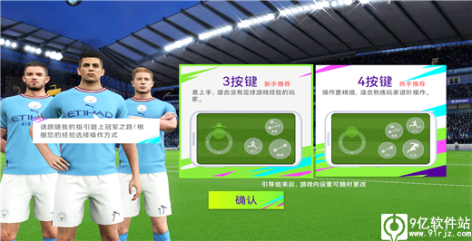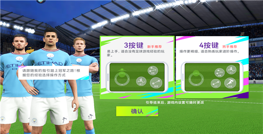 1、进入游戏后,会弹出按键选择界面,分别为三键和四键,三键按键为射门,直塞和传球,四键按键多了一个加速,选用三键按键的玩家想要加速只需要把方向键拉到底即可,这里推荐新手玩家都选用三键,因为四键的操作难度更高。