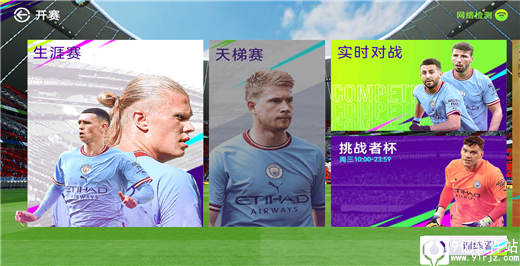 2、进入到游戏主界面后,点击开赛即可挑选你要进行的比赛。有四个玩法,生涯赛、天梯赛、实时对战、挑战者杯和训练营。