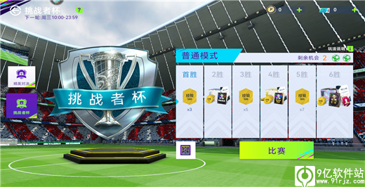 6、挑战者杯限时开放,在这里可以挑战各个世界知名的俱乐部,每胜利一局都会获得一个胜利礼包。