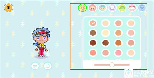 4、在屏幕右边可以给角色切换衣服服饰、肤色等