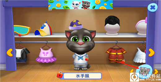 2、在更衣室内点击图中的按钮可以给宠物更换衣服