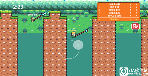 1、全程一个手指就能操作,玩家需要控制主角躲避敌人的攻击,用锤子把敌人推出地图。2、你的锤子可以勾出地图上的任何地方,但要小心使用,很有可能会被躺会去。
