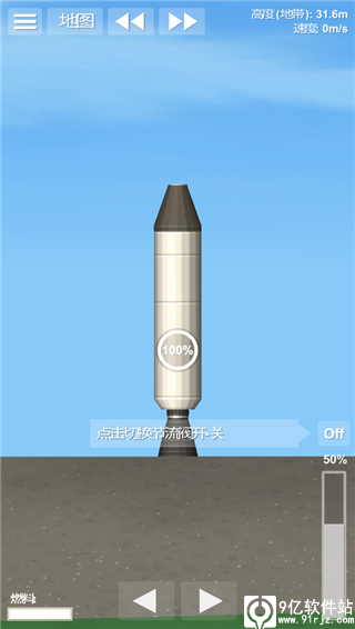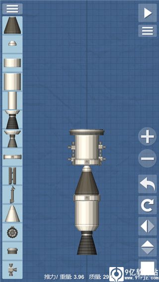1、打开游戏,点击创建新火箭,首先制作一个中等的燃料箱,然后下方加一个分离器,加上控制室和降落伞;