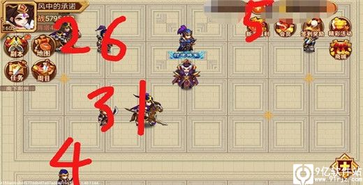 兵阵塔第四层,棋阵,破阵提示语:双車见佳人。这一层本人棋艺不精,改日一定找策划好好切磋一下,这里,只要打一百级的那个就对了,一千级的都是错的,碰到了立马撤退,按下图顺序打就好了。破阵奖励小乔专属和功勋值。