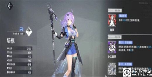 先来说一下他的基础技能,普通攻击音浪,使用这个技能的时候将会对敌方目标造成100%的异能伤害力,接下来就是战中技能了,第一个就是技能心之旋律,当在战斗的时候,触发到这个技能的话,那可以对有限范围内的敌人的攻击,以及移动速度都降低30%,并且这个技能效果持续的时间会有20秒。
