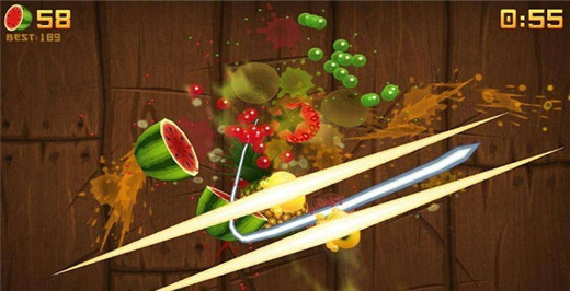 3.更提倡横切而不是纵切,因为屏幕是横的,大多数水果都是圆的,且多为从左往右成群排列。弧线 切割往往切到更多水果,能得到更多combo,但也需要更多技巧,掌握不好会被记为多次切割.