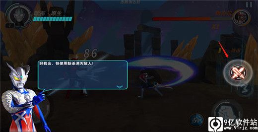 3、横版的游戏玩法,使用奥特曼角色在场景中连击你的敌人