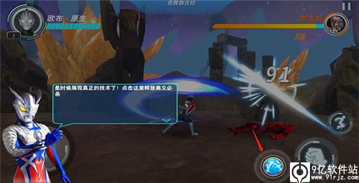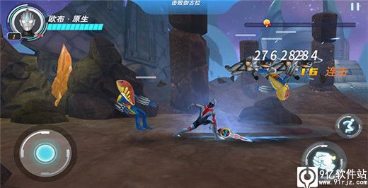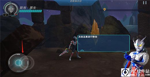 2、在游戏的战斗中,玩家可以用左下角的虚拟按键操控奥特曼行动
