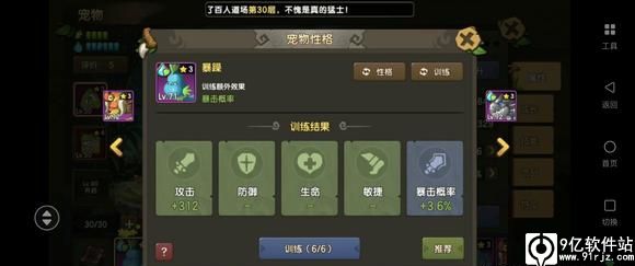 7、宠物性格训练,个人建议要不不训练,要不全橙色属性,不然后期要重新洗,这个一个合适的橙色属性平均50万石币,慎用!!不是主要培养宠物,建议不要训练或者蓝色属性紫色属性凑合。