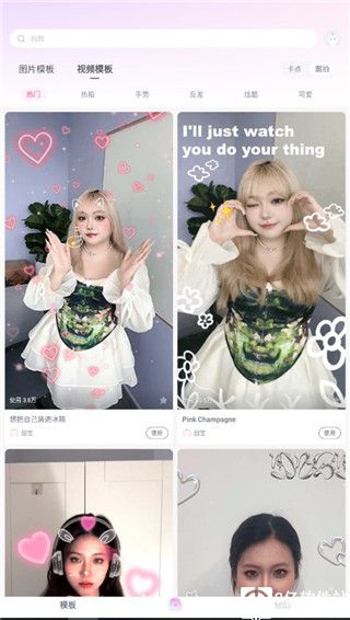 3、而在跟拍中我们可以选择关于手势的、也可以反差风、炫酷风和可爱风等等,让你秒变甜系少女