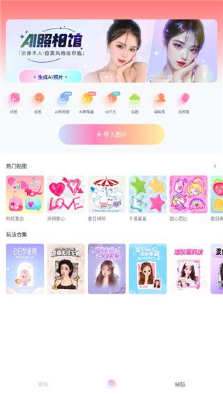 1、一甜相机中提供了丰富的图片模板,包含了当下热门、最新的各种模板,各类假期、壁纸、AI玩法都囊括在内