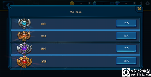 1、在练习模式内有四种难度可以选择,玩家可以根据自己的实力来选择难度