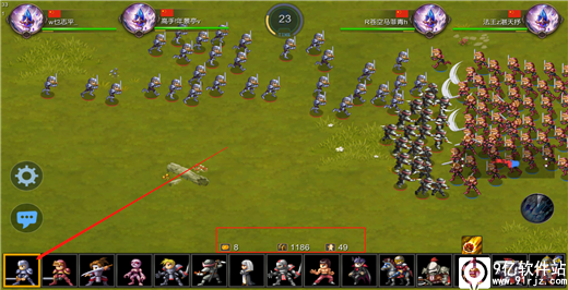 3、进入对局后,选择派出一个兵种,不同的兵种价格和强度都不一样