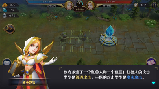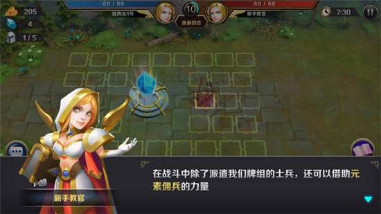 这关中大家将学习到一些比较有用的操作,例如您可以再适当的时候召唤出元素兵中来协同您作战,可不要小瞧它们,他们的光环技能是非常强大的哦。另外,您还可以学习到如何在战斗中随机出战卡组,为战斗中带来更多的变数,甚至在同一个卡组位置建造多个相同类型的兵种,大大增强您的实力。