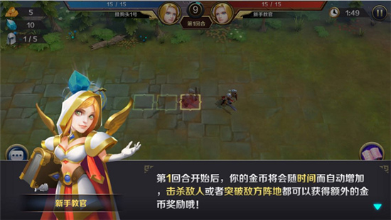 从这关开始,就不是强制教学啦,在这关中大家将了解到什么是兵线,兵线是另一个非常重要的概念,也是这个游戏中的重要玩法之一,正确控制并向将对您的战斗产生不可估量的影响,可将您的优势放大冰直接转化成对水晶塔的伤害,但是如果没有控制好兵线,那么被对方盘末翻盘也不是没有可能的。
