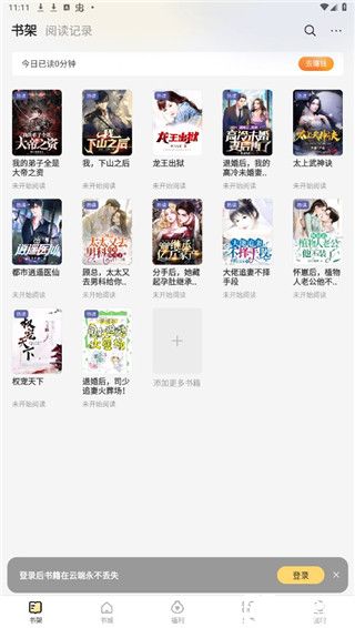 4、书架功能也是非常重要的,对于喜欢的书籍我们可以放在书架上方便阅读,同时登录账号之后书籍在云端也不会丢失哦
