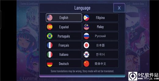 1、进入游戏来到下方界面后,点击右下方的Language选项