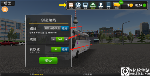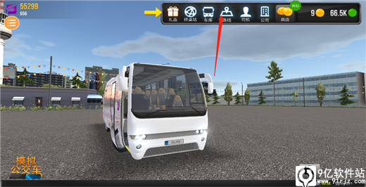 1、打开公交车模拟器游戏在最上面功能栏中找到‘路线’点击进去