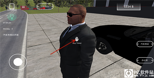1、首先先去找到卖车的地方,并且找到一个会出现手掌标志的人,我们点击手掌标志