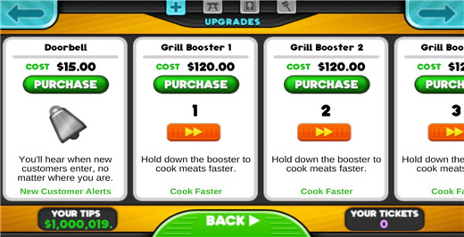 1、一款经典的模拟经营游戏2、扮演店长经营你的热狗店