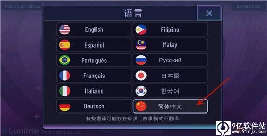 很多第一次玩的朋友不知道怎么修改游戏语言,下面就跟着小编一起来操作1、在9亿软件站下载这款游戏后,在你的手机上打开