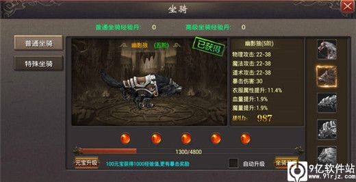 5、你还可以在其中对坐骑进行升级来获得更多的属性和更绚丽的外观