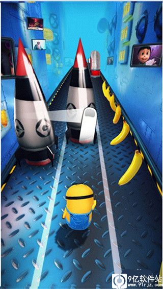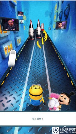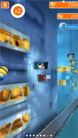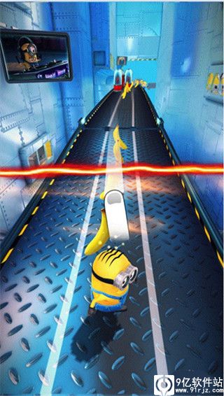 2、用手指向右滑动可以使小黄人避开障碍物。