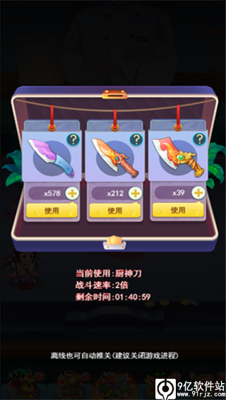 4、玩家还可以使用厨刀进行加速,让你的挂机收益更加丰富