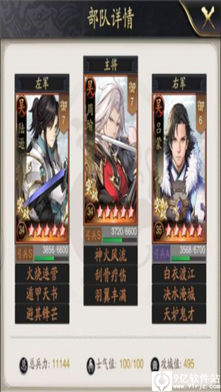 对于平民和低氪玩家来说,这一队还是很不错的选择,统御较低,大乔和程普相对爆率较高,技能搭配方面大乔铜雀春深配合周瑜锁定敌方主将输出,治疗配合上程普的减伤能够抗住敌方的伤害,周瑜带【息军养士】【穷追不舍】保证生存和输出;大乔【决水淹城】【磐石镇守】在补足输出的同时为主将周瑜提供高强度减伤buff;程普带【居高临下】【身先士卒】全方位加强周瑜的输出,周瑜利用6次神火风流很容易将对方主将秒杀,取得胜利。