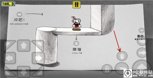 10、当角色下方有地面时,还可以通过图中按钮来进行下降