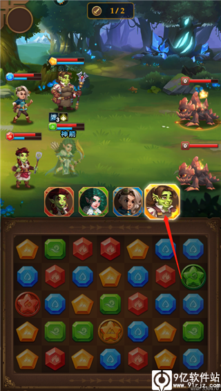 在游戏中玩家需要通过消除宝石来为角色充能让他们攻击