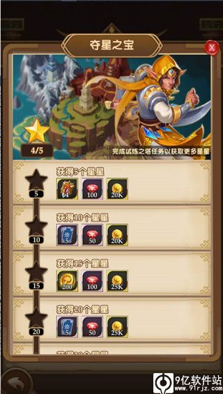 在爬塔的过程中,每完成一次任务可以获取奖励以及一颗星星,星星在“夺命之宝”中可以领取到更加丰富的奖励!