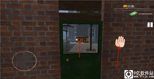 4、将我们的指示器对准“打开”门牌,然后点击右边的手图标