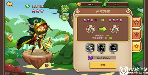 英雄觉醒:6星以上的英雄可以进行觉醒,觉醒会提升英雄的星级并且让英雄的属性和技能大幅度增强。