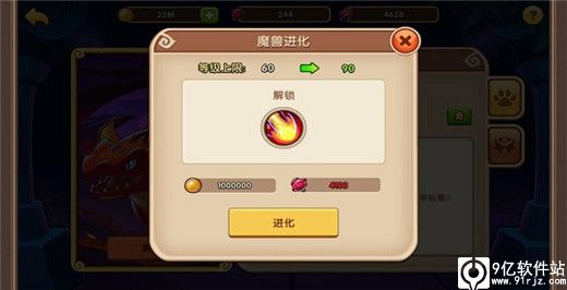 魔兽进阶:当魔兽升级满后,可以为魔兽进阶,使魔兽的主动技能大幅度加强,还能解锁魔兽的被动技能。