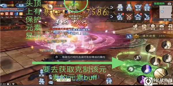 每过一定时间大概30秒,boss头上随机刷新一个五行,有颜色并且有名字标示,同时boss受到的伤害降低60%,必须根据五行相克的原理去触及正确的小圈获得克制BOSS当前的五行,才能抵消掉BOSS的减伤并让自己的输出获得增伤。