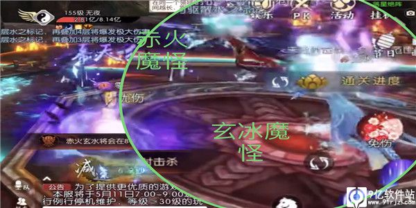 同时“赤火、玄冰”这两个魔怪因为会追击目标也就会跟过来,就在这个安全地带速度击杀这两个小boss即可,要留意它们从出现到当前的倒计时,8秒内没能打死,速度释放防护减伤无敌系列技能顶必杀,同时尽量与其拉开距离到8码之外。