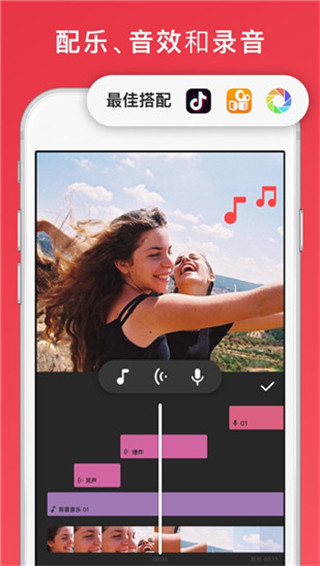 4、软件可以在视频中添加音乐,用户可以添加软件自带的音乐也可以上传自己本地的音乐