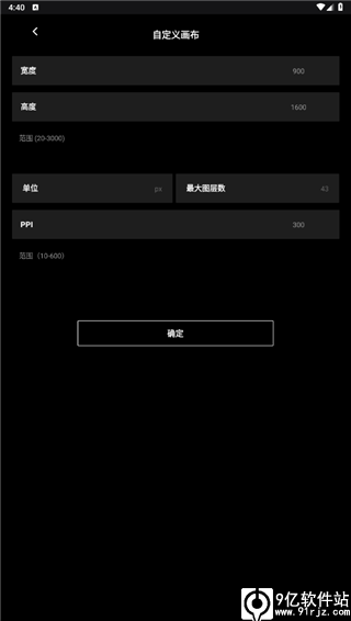 3、在自定义画布中设置画布宽高、单位、最大层数、PPI