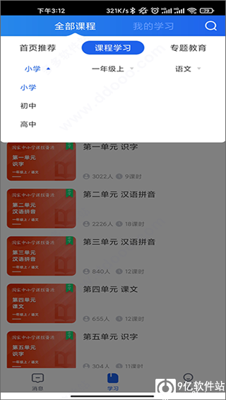 3、我们可以直接点击“课程学习”在其中筛选我们需要的课程