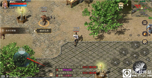 3、通过右边的虚拟按键释放技能击杀小怪