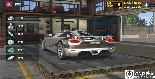 1、在城市赛车模拟器游戏主界面中点击"表现"